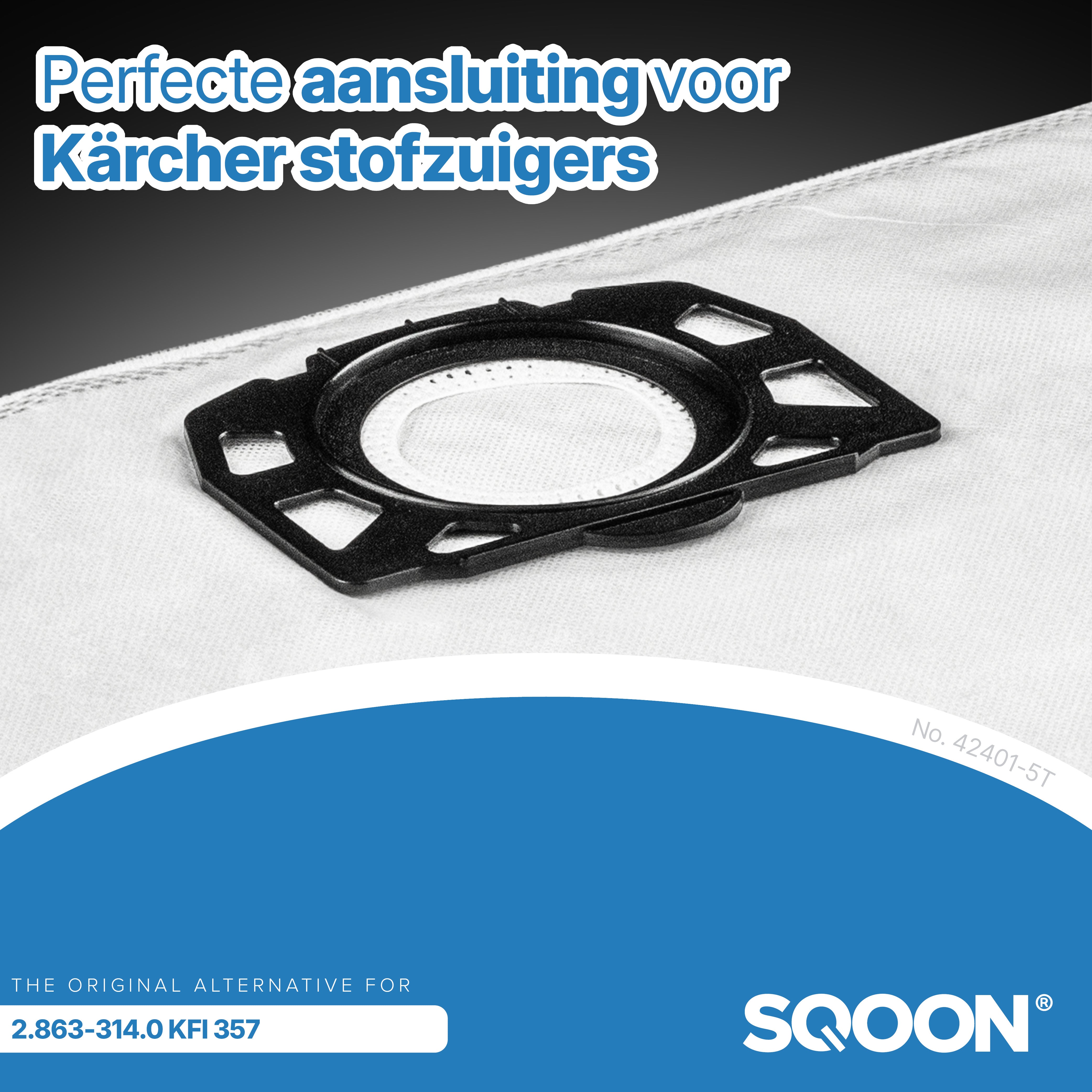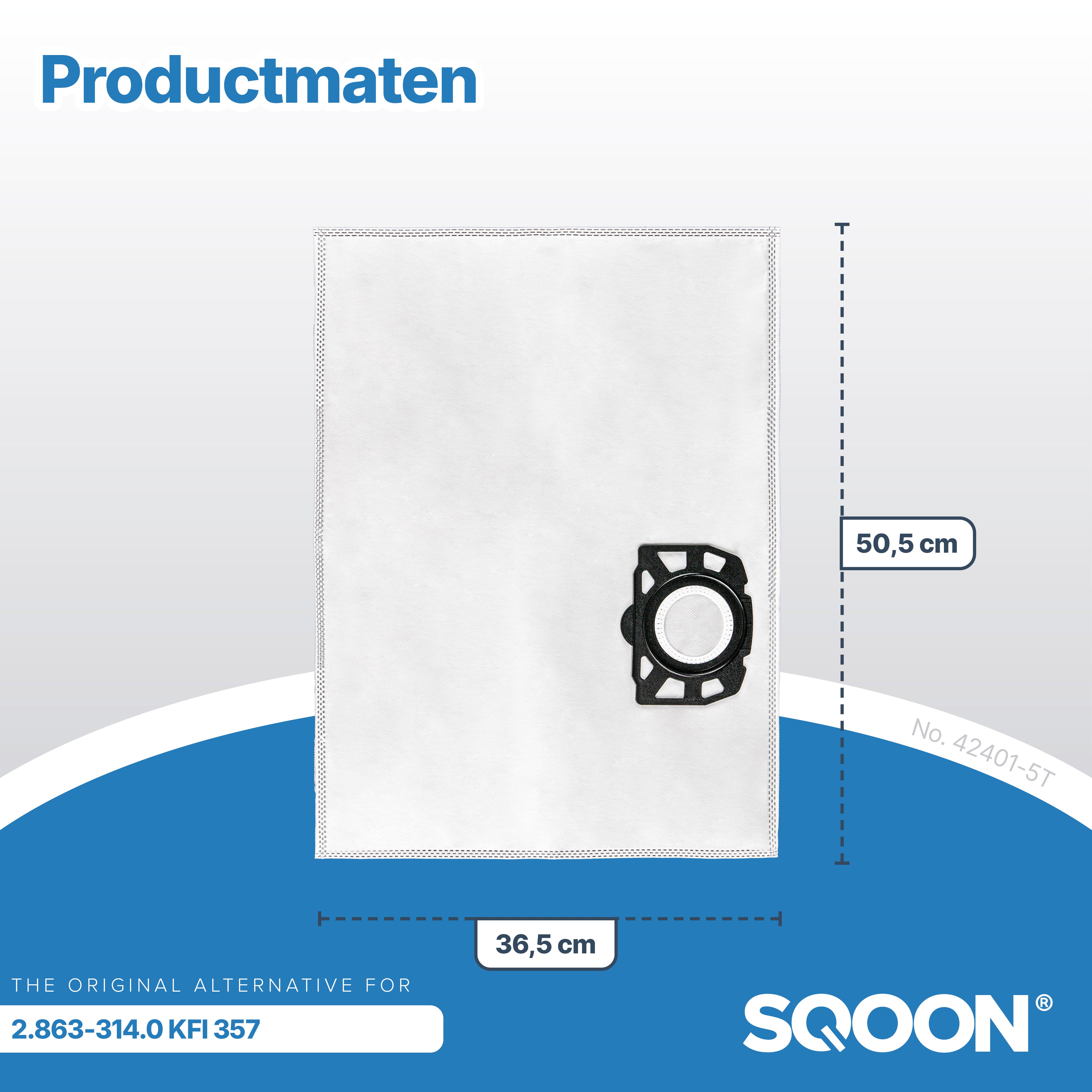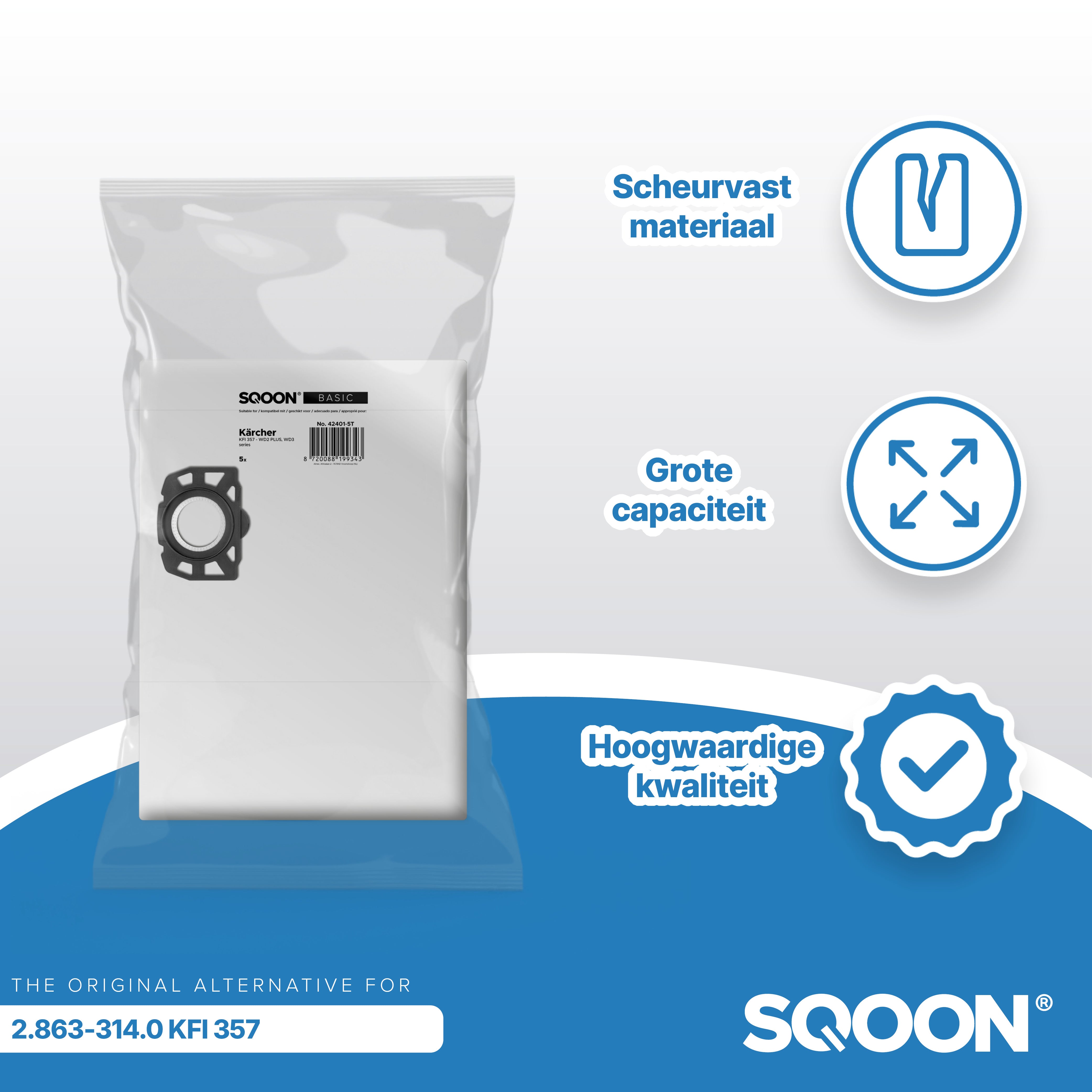 SQOON® Stofzuigerzakken geschikt voor Karcher WD 2 PLUS & WD3 series - KFI 357 - Model 2.863-314.0 - 5 stuks