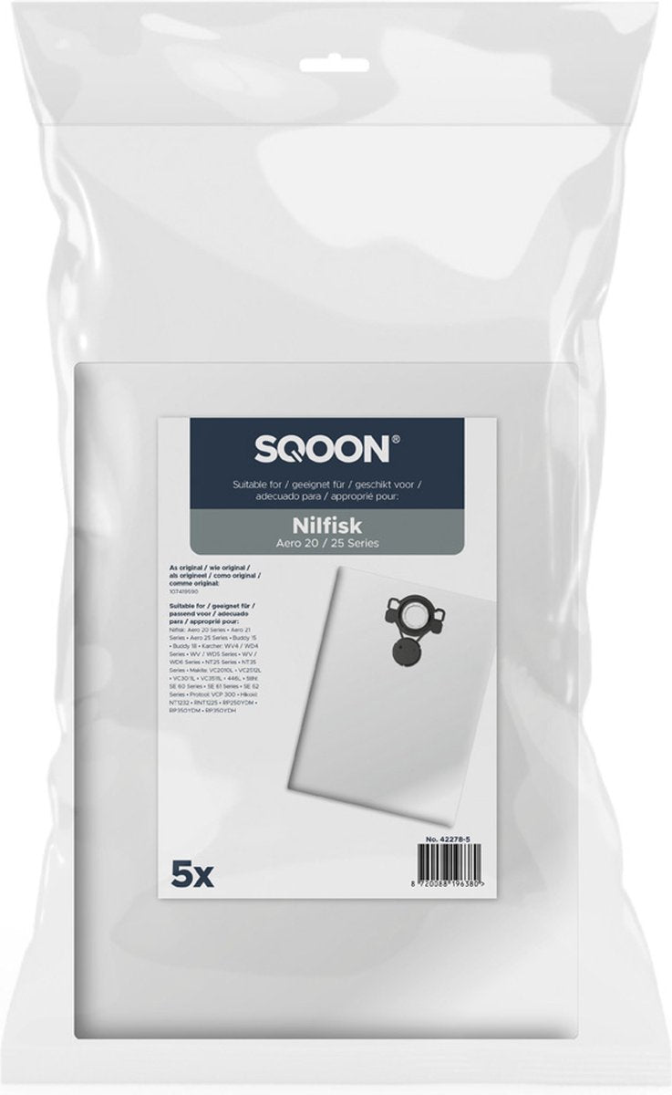 SQOON® Stofzuigerzakken Geschikt voor Nilfisk Alto / WAP / KEW AERO 20/25/26 Series - 5 Stuks