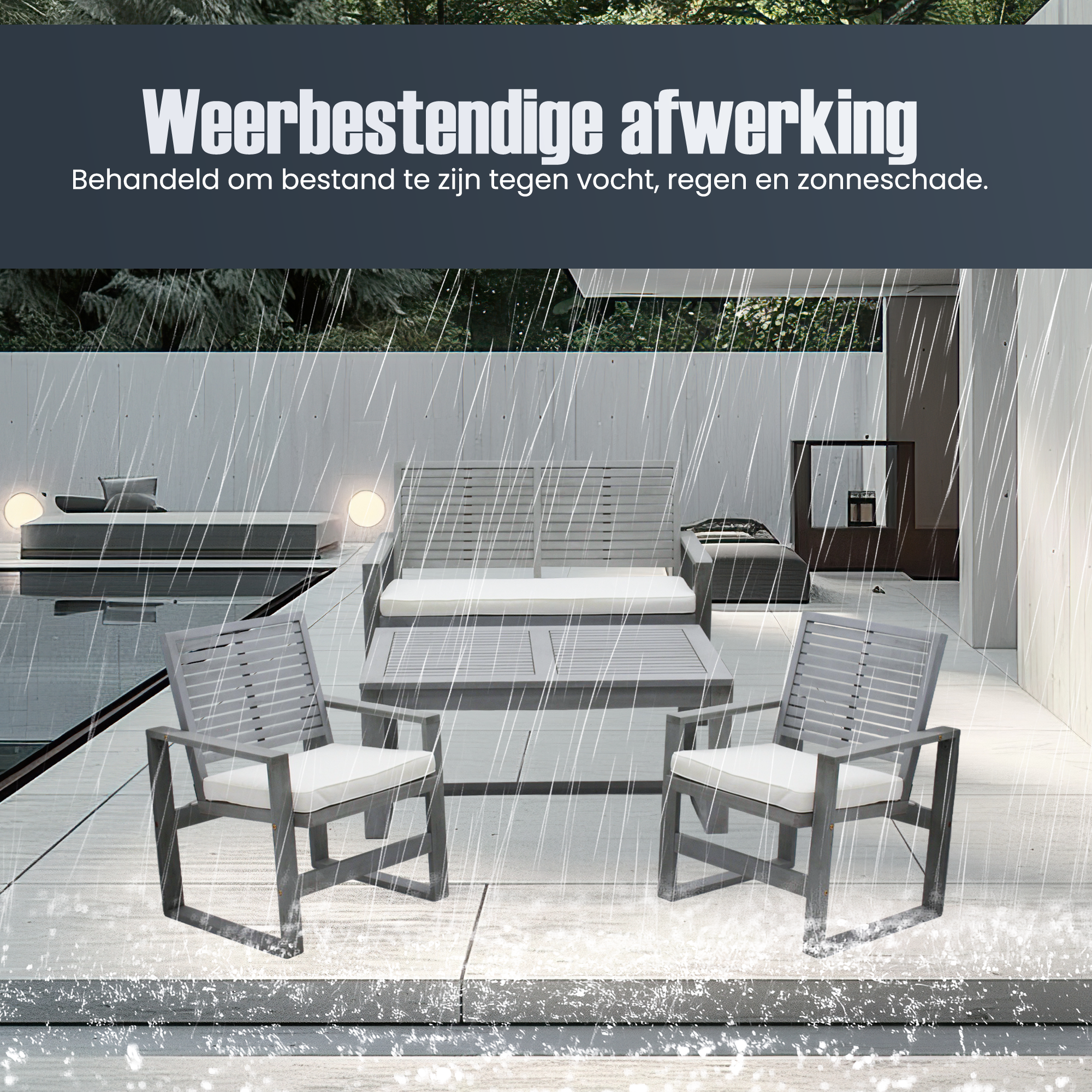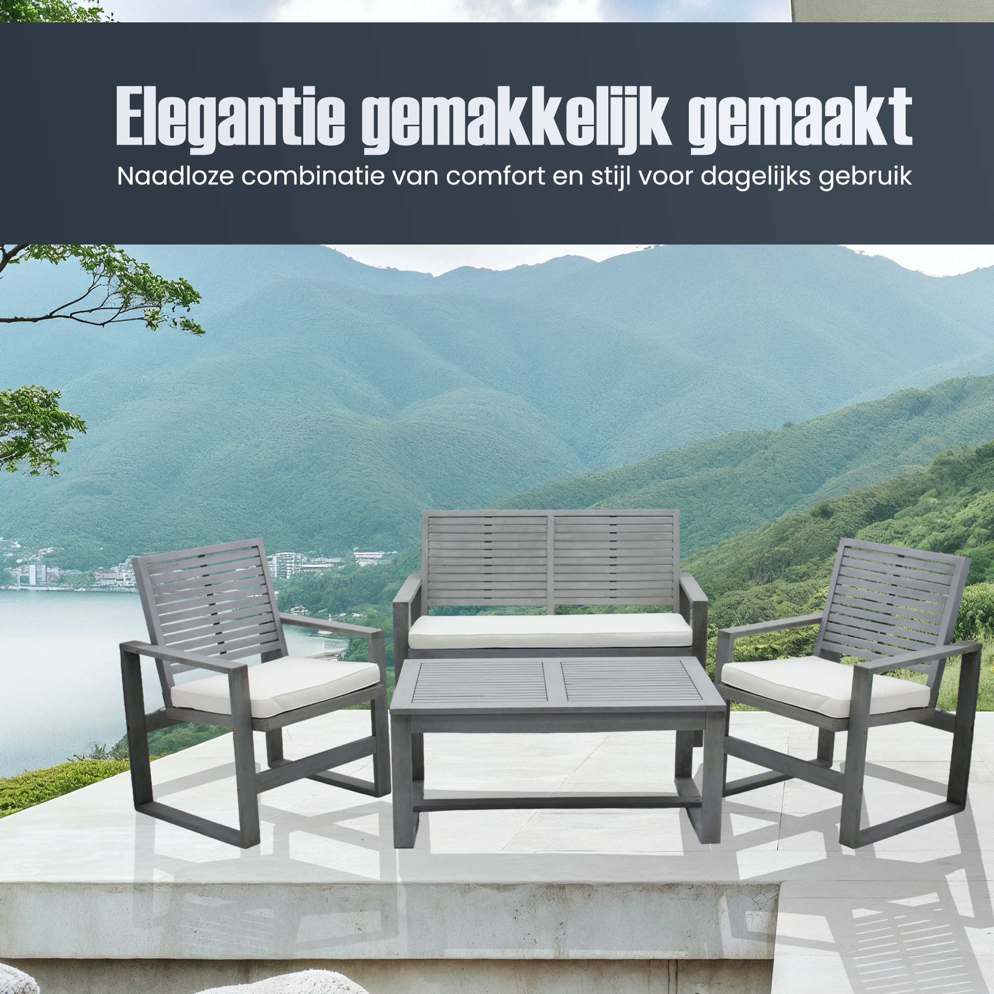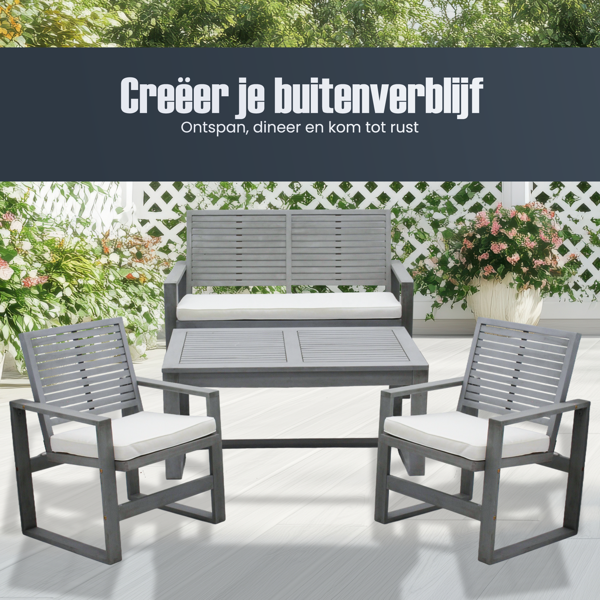 Tuinset 4-Delig – Stoelen, Bank & Tafel – Grijs/Wit – Volledig Hout