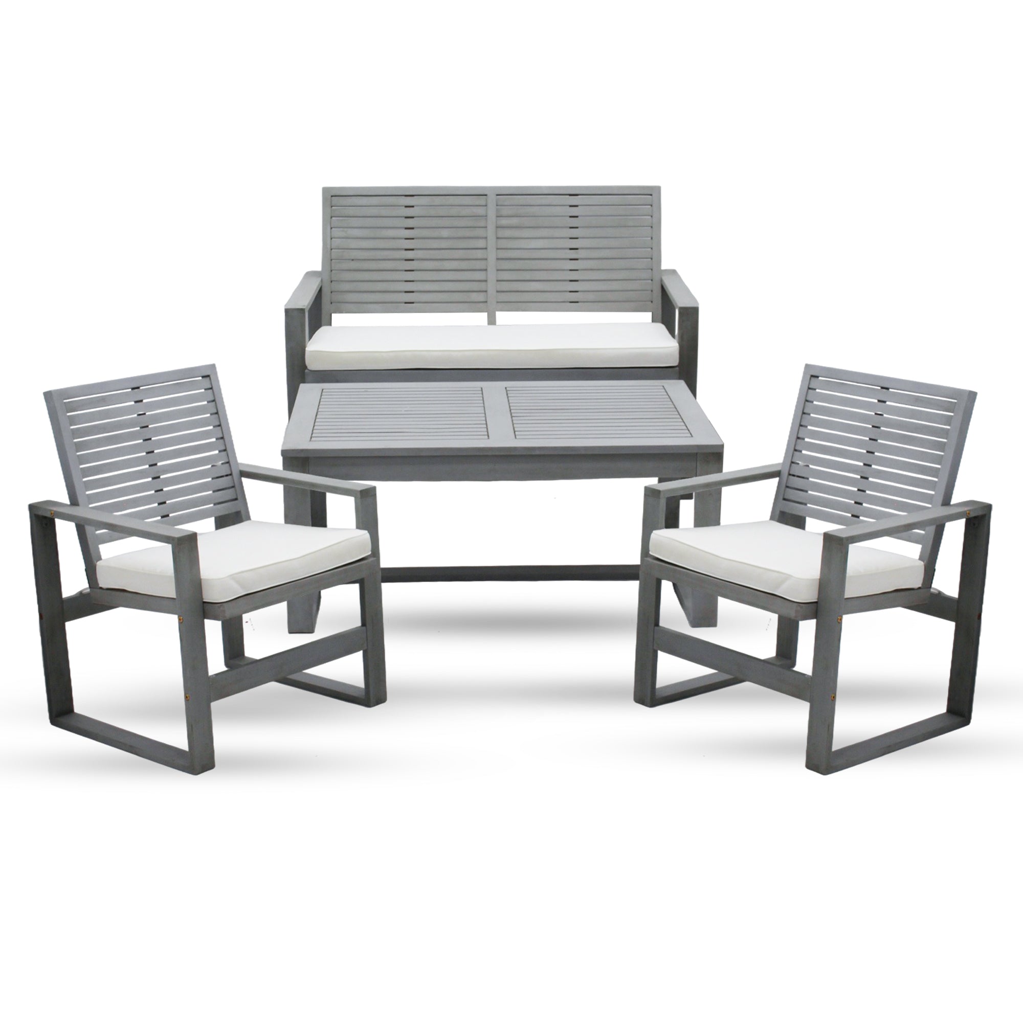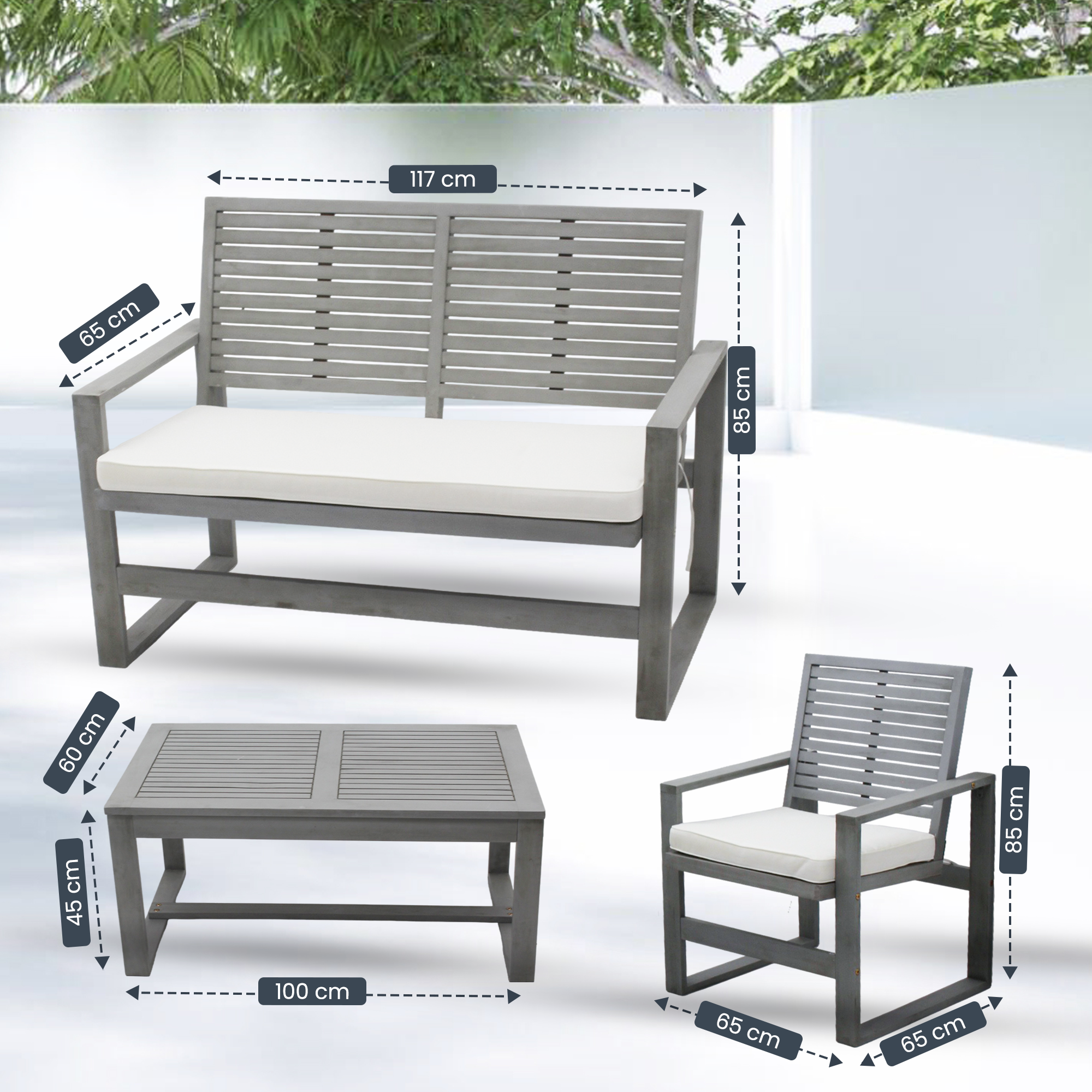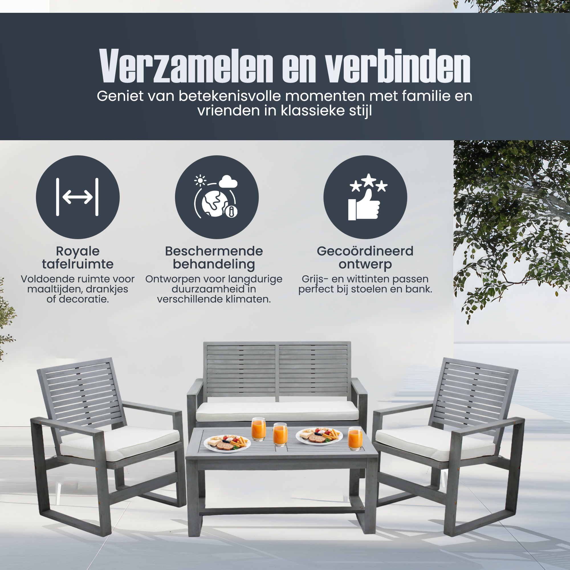 Tuinset 4-Delig – Stoelen, Bank & Tafel – Grijs/Wit – Volledig Hout