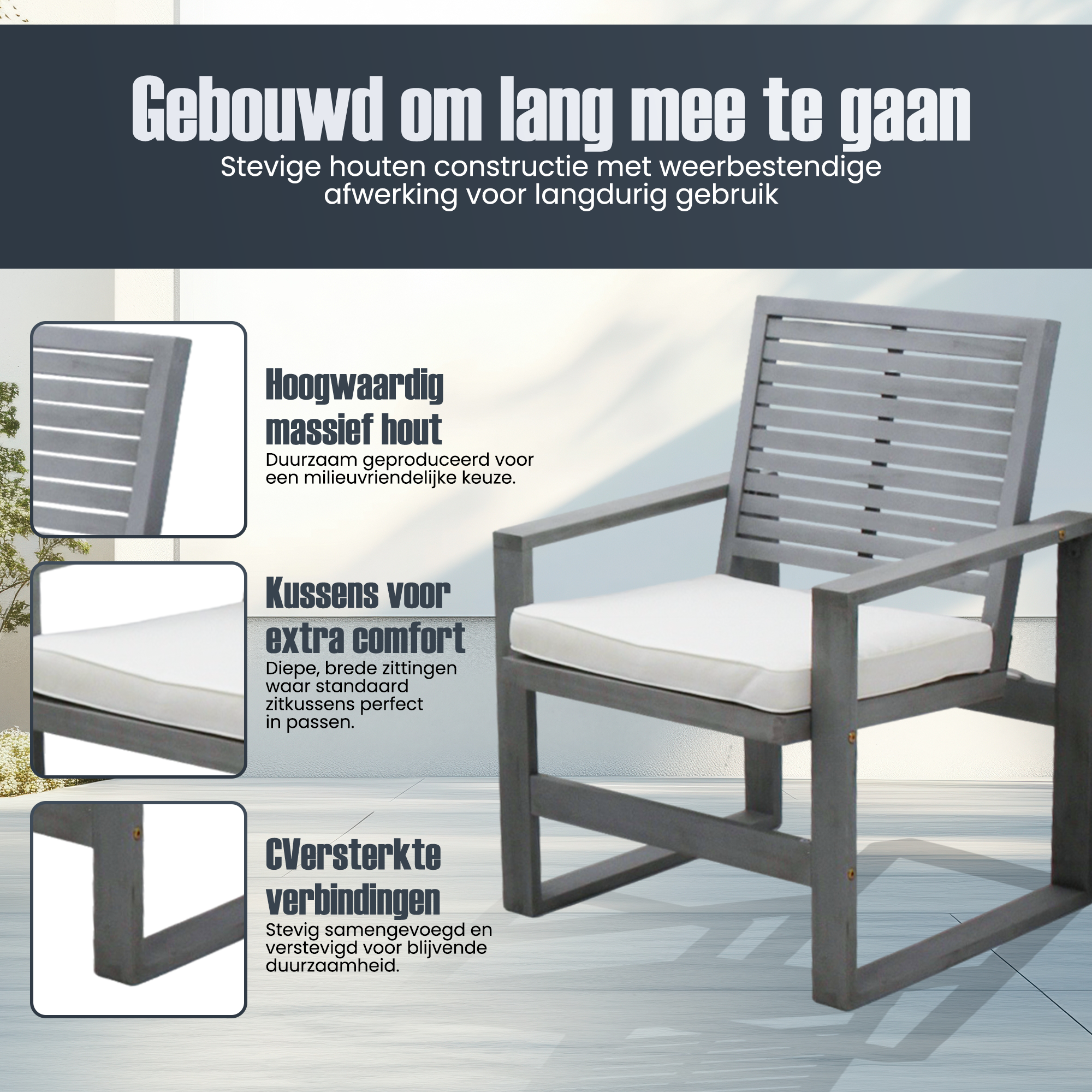 Of je nu wilt ontspannen in de zon, dineren met het gezin of simpelweg genieten van je buitenruimte: deze houten tuinset biedt comfort, karakter en klasse in één stijlvolle combinatie.
