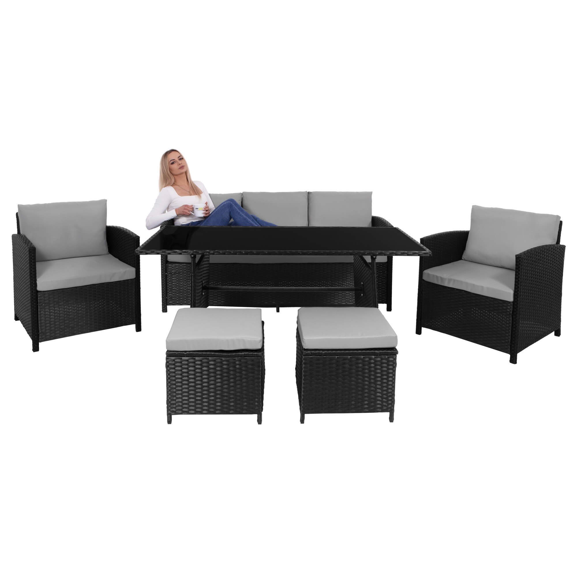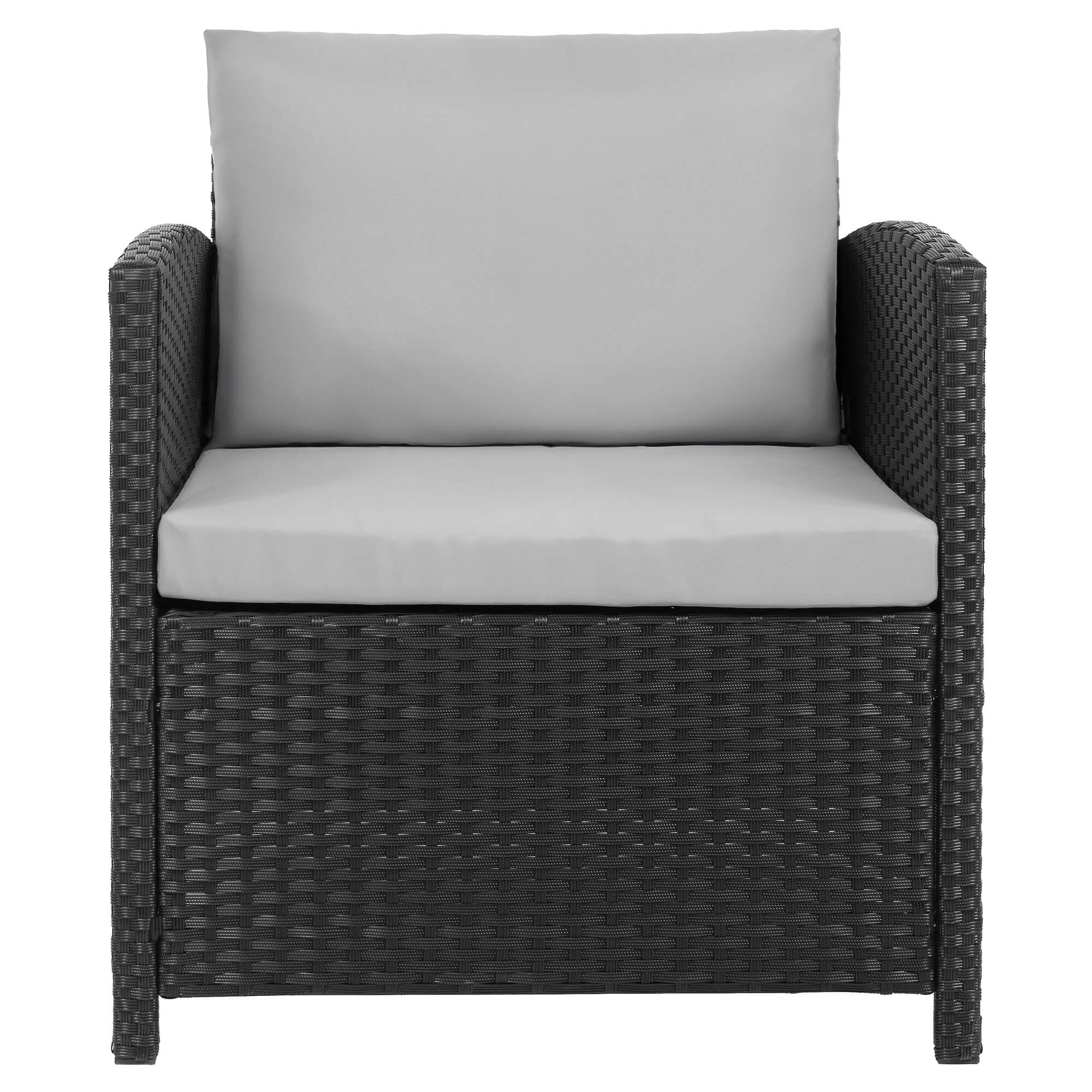 - Materiaal: technorattan, donker gehard glas, polyester/PP-schuim