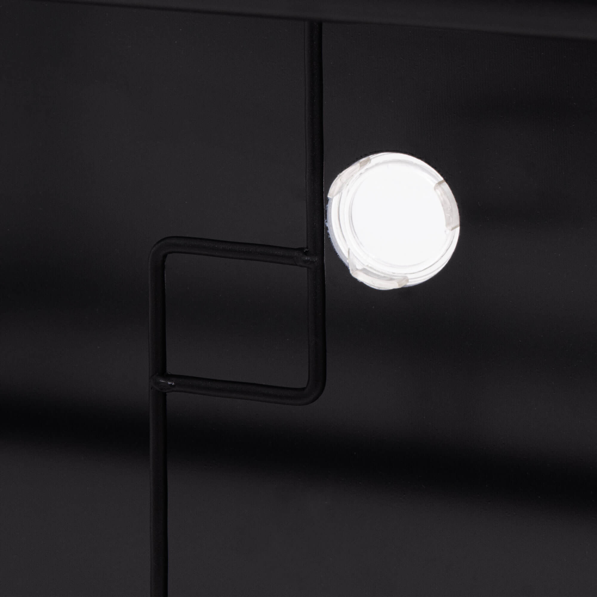 - Materiaal: Gepoedercoat metaal, donker gehard glas