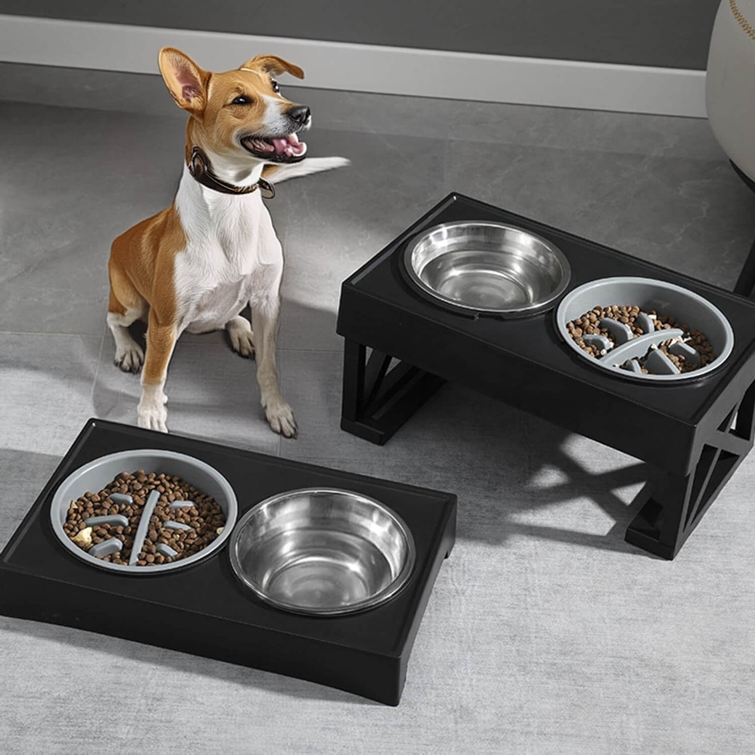 2-in-1 water- en voedselvertragingskom met in hoogte verstelbare standaard
